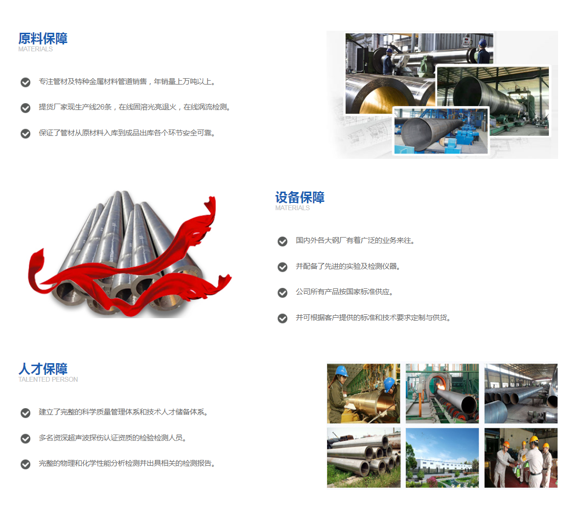 山東鑫盛鑫鋼鐵有限公司是一家專業(yè)銷售:無縫鋼管,合金管,異型管,精密管,圓鋼,軸承鋼的大型無縫鋼管廠廠家。可定做,多種規(guī)格,多種型號的無縫鋼管。另常年兼營成都、包鋼、冶鋼、魯寶、鞍鋼、安陽、洪都、天津等幾大鋼廠的國產(chǎn)進(jìn)口的無縫鋼管、無縫管、流體鋼管、直縫焊管,經(jīng)營品種多、規(guī)格齊全,保質(zhì)保量,常年庫存保有量7000噸以上。所售產(chǎn)品均執(zhí)行國家標(biāo)準(zhǔn),適用于工程、煤礦、紡織、電力、鍋爐、機(jī)械、軍工等各個領(lǐng)域。公司始終堅持“公正、客觀、科學(xué)、誠信”的經(jīng)營原則,重合同、守信譽(yù)、保質(zhì)保量、按期交貨”。多年來公司憑借良好的信譽(yù)、優(yōu)質(zhì)的產(chǎn)品、低廉的價格享譽(yù)全國30多個省、市、自治區(qū),產(chǎn)品出口歐洲、南美等十多個國家,深得用戶信賴! 常備材質(zhì):20#、45#、20G、16Mn、27SiMn、12Cr1MoVG、15CrMo、T91、10CrMo910、STFA25(P5)、STFA26(P9)、P11、P12、A335P91、A335P92、WB36[15NiCuMoNB5]、鋼研102(12Cr2MoWVTiB)等。執(zhí)行標(biāo)準(zhǔn)為:結(jié)構(gòu)管GB8162-1999、流體管GB8163-1999、低中壓鍋爐管GB3087-1999、液壓支架管GB17396-1999、高壓鍋爐管GB...